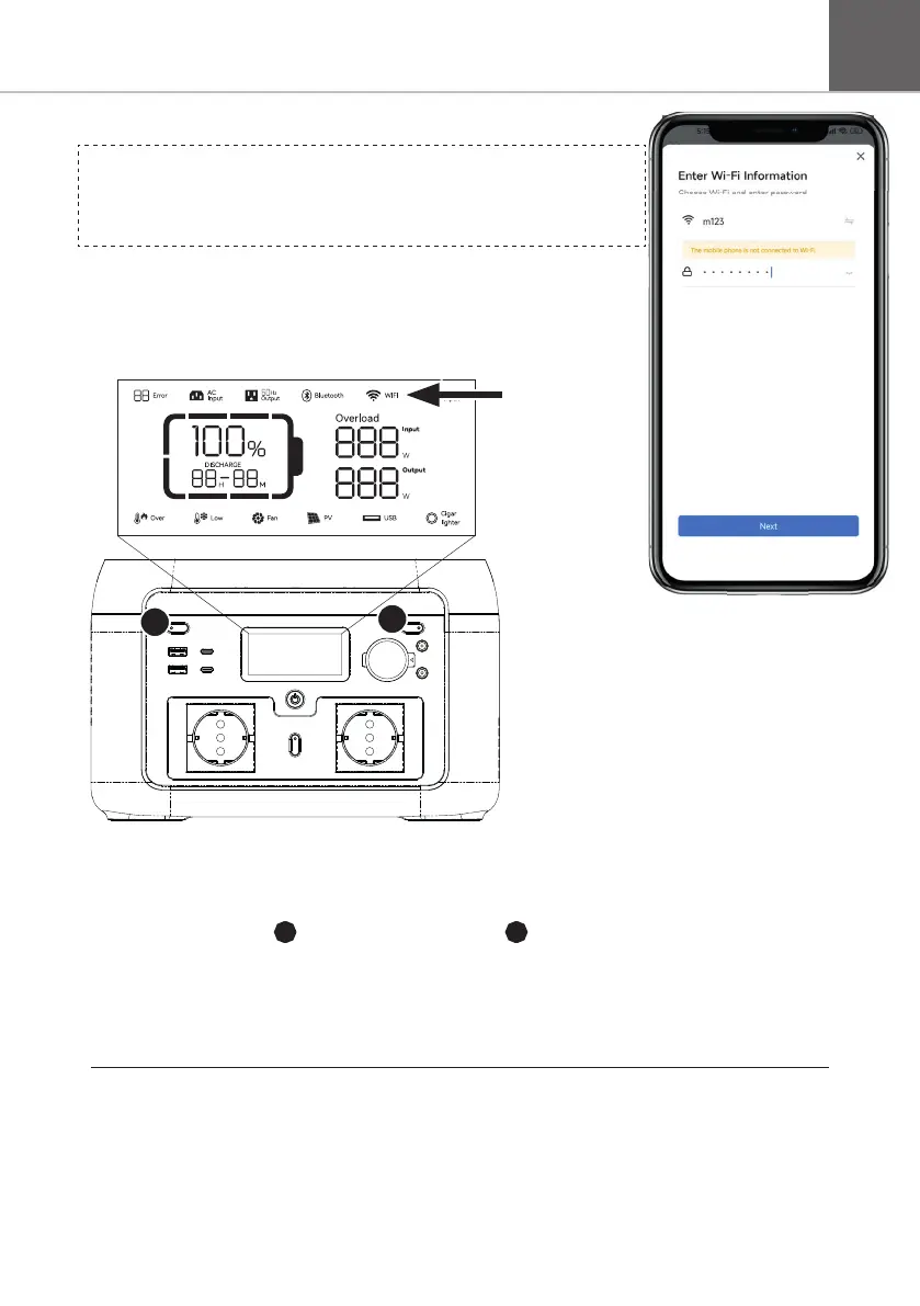 Hem LED ışık düğmesine 2 hem de DC çıkış düğmesine 5 basarak güç istasyonunun uygulama