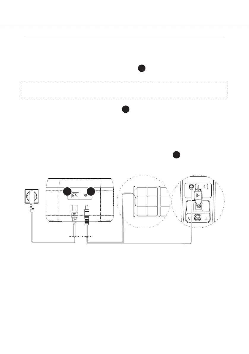 • The power station can be charged through the solar/car charge input 13 with the charging