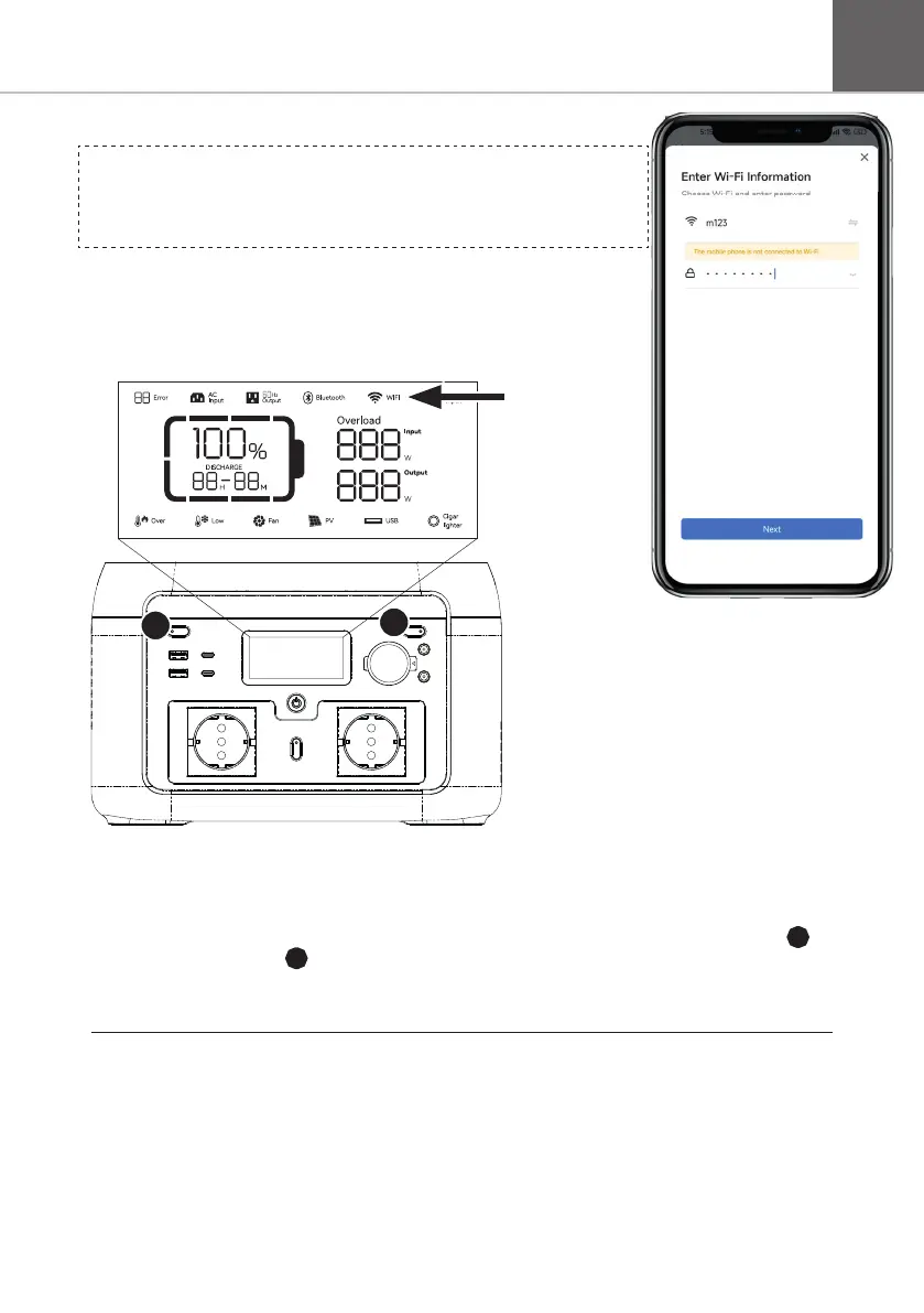 and the DC output button 5 . The Wi-Fi icon will start ashing to indicate a successful reset.