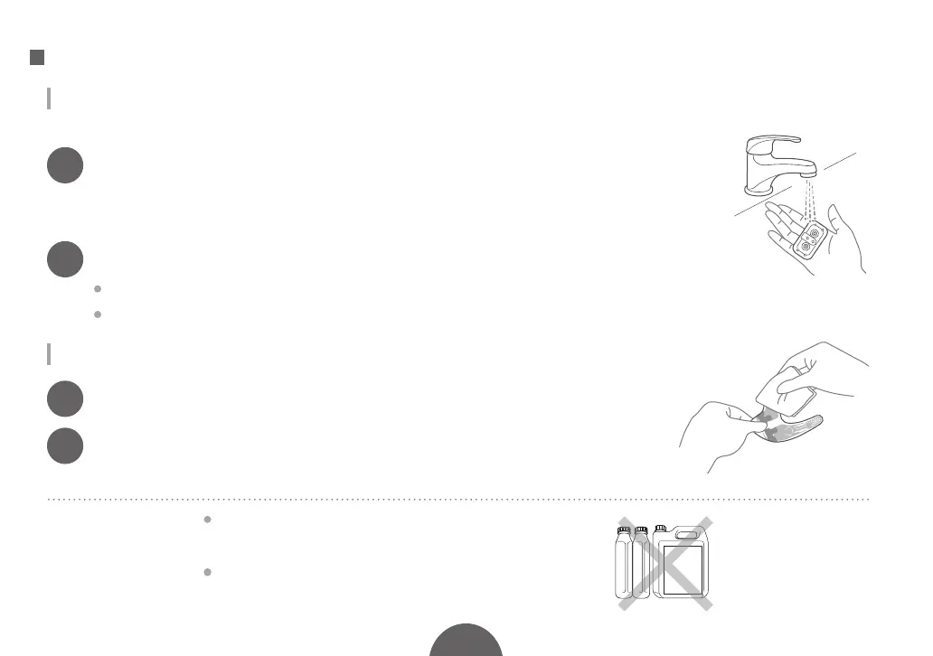 Wipe by pressing lightly with a wet tissue from the top.