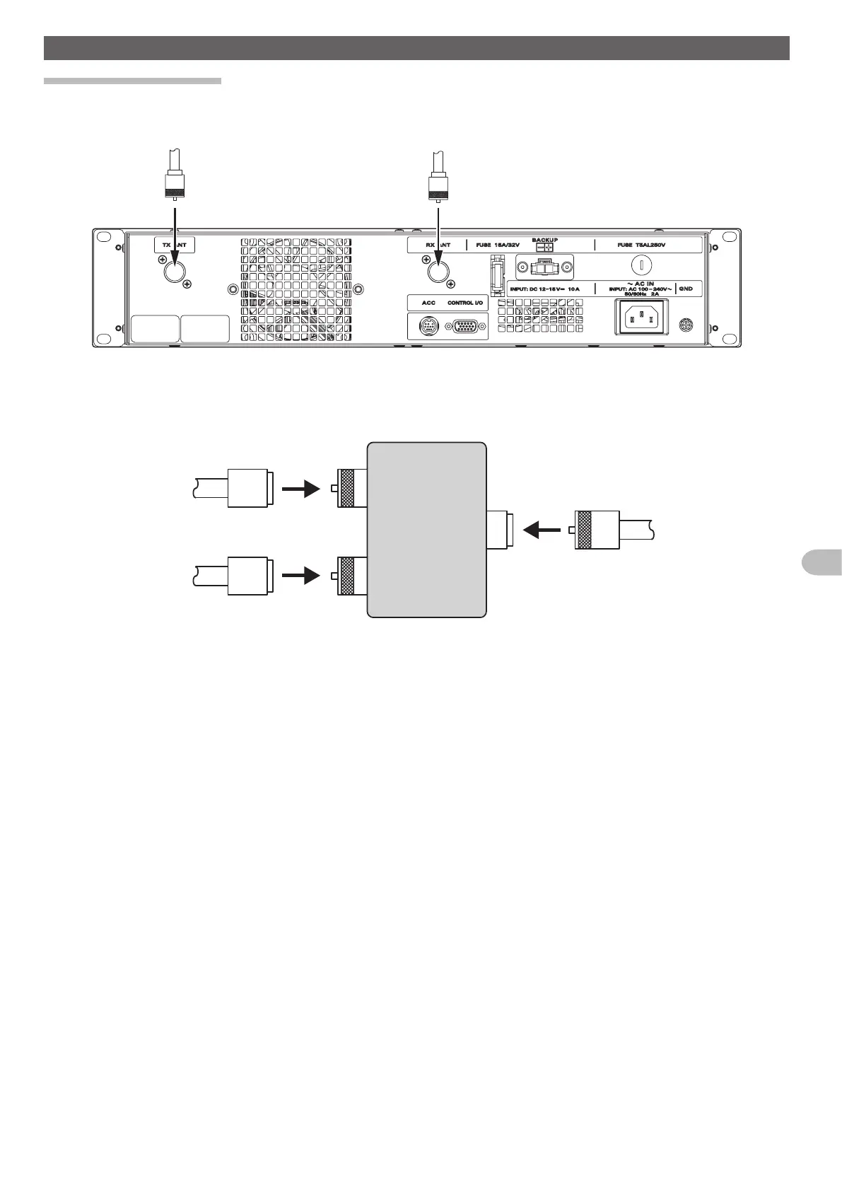2 To use a duplexer prepared by yourself, plug in the terminal of the coaxial cables from the TX ANT and RX ANT terminals into the