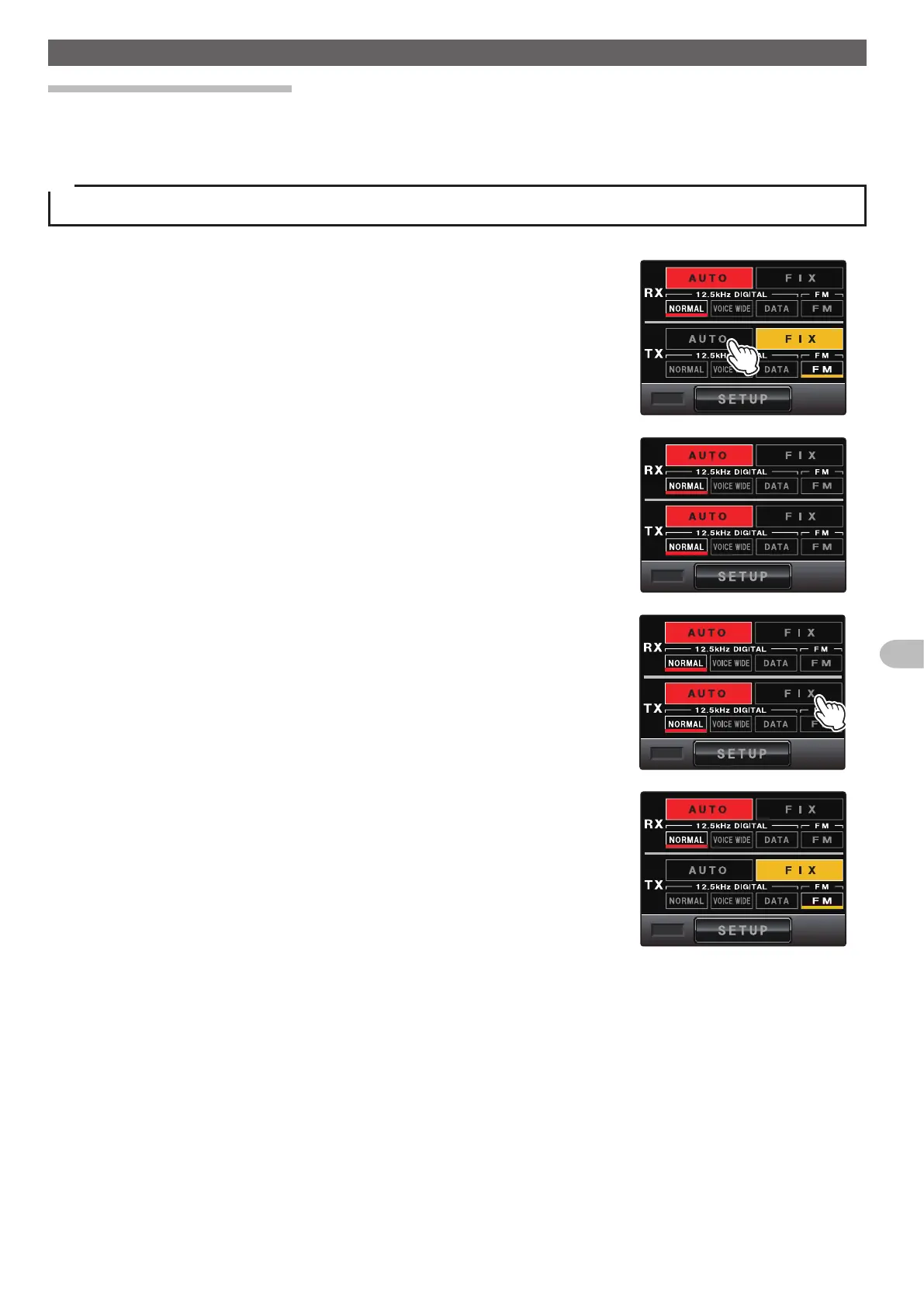 In the factory default, the RX band is set to the AUTO mode, and the TX band to the FIX mode.