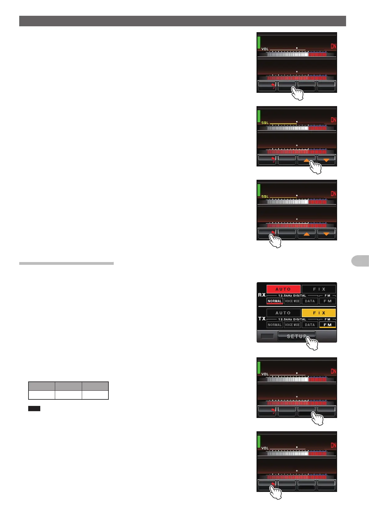 When [SQL] turns orange, the VOL meter below the frequency of the RX band will