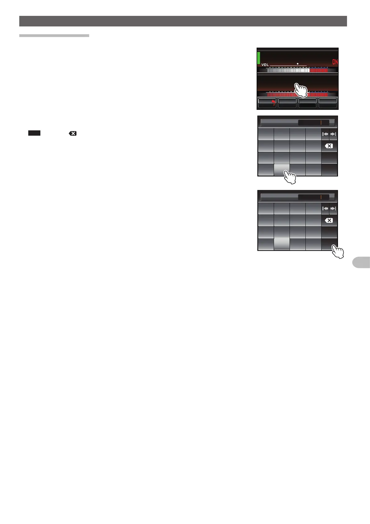 Tips • Each time [ ] is touched the cursor will move to the left and erase one character.