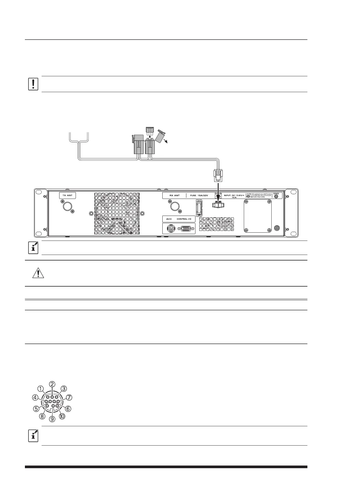 The DC power connector for the DR-1XE must only be connected to a DC source providing 13.8V DC (±15 %),