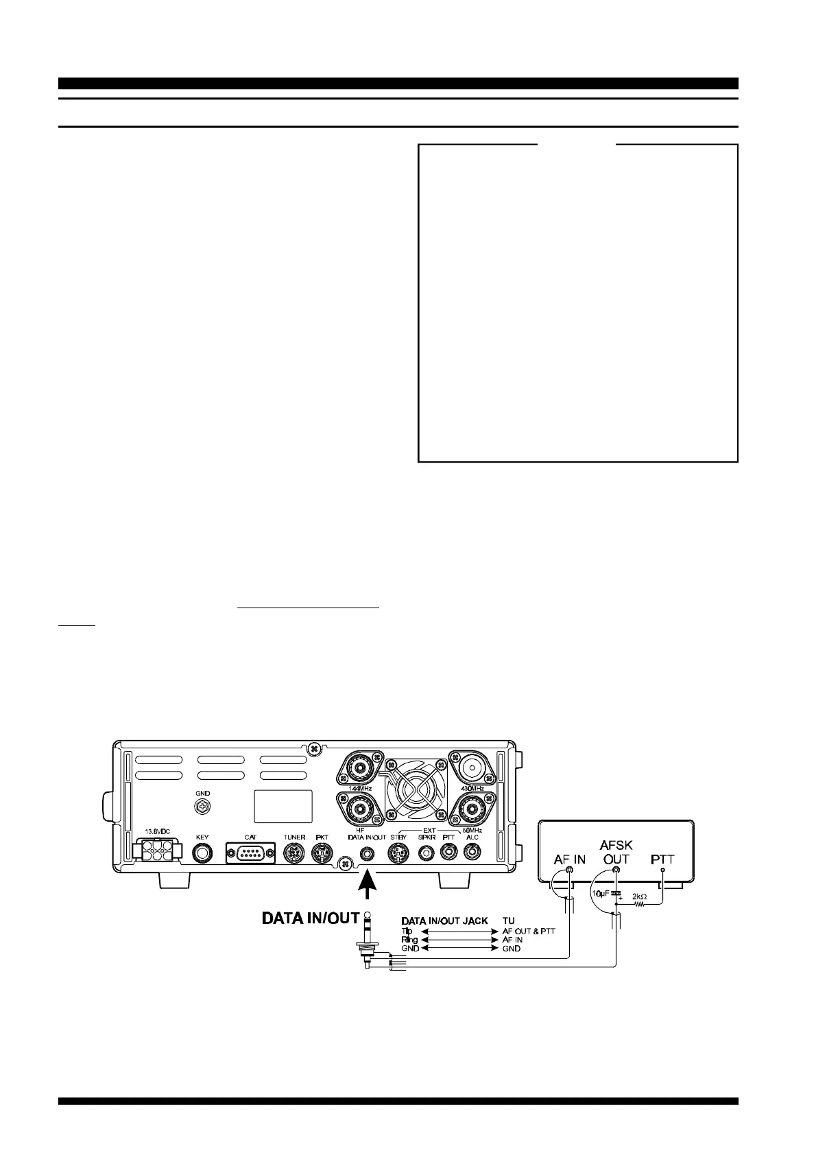 Note: If you use the rear-panel’s “PTT” jack for AFSK