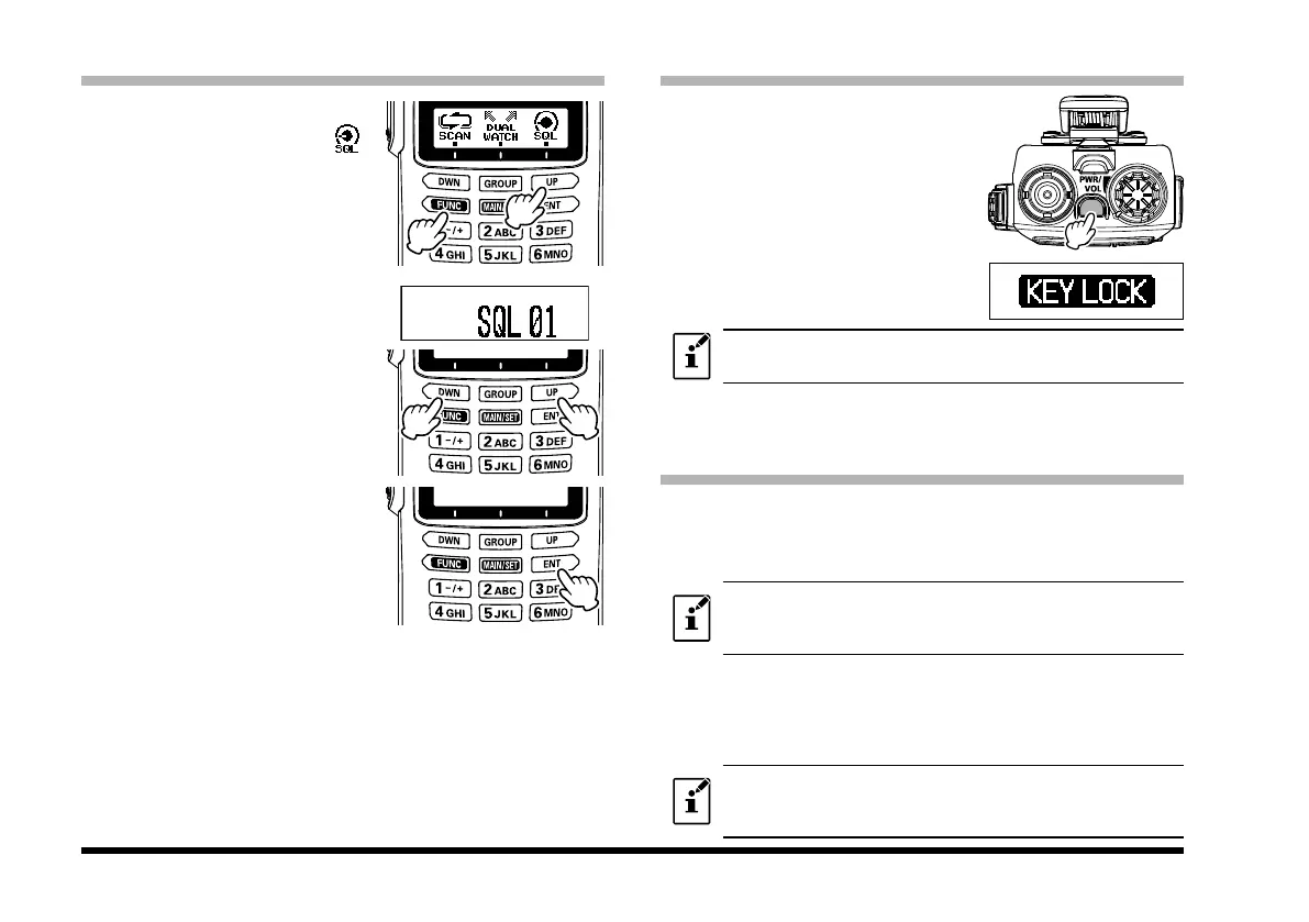 The PTT switch, PWR/VOL knob, 121.5 key, and LOCK