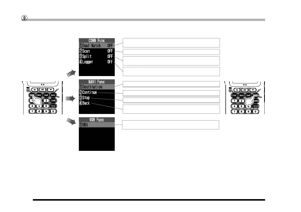 Access the functions just by pressing a number on the numeric keypad of the desired function listed on the display.