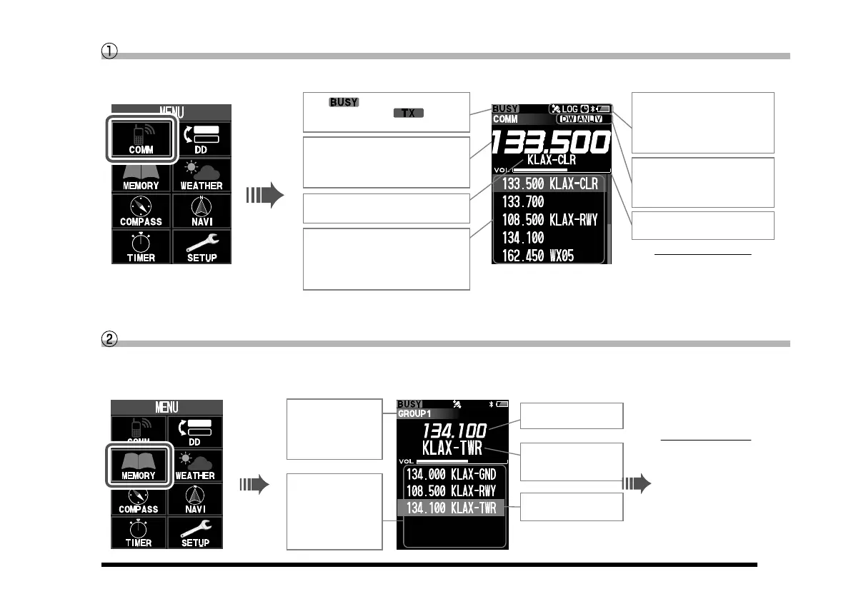 Press the [MENU] key Select “COMM” Press the [ENT] key / or Press the [COMM] key