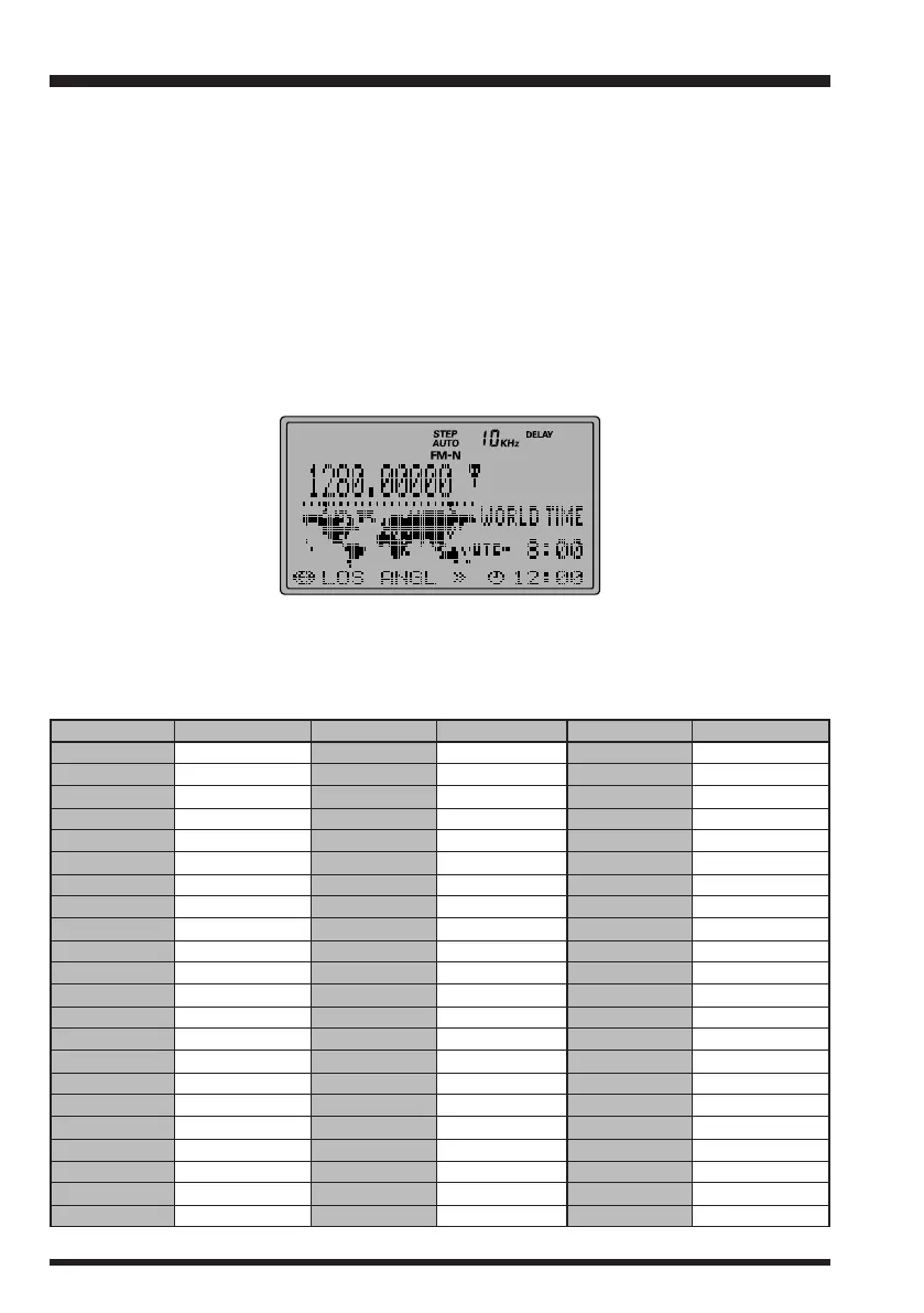 The VR-5000 provides a World Clock with time references to 66 different areas of the