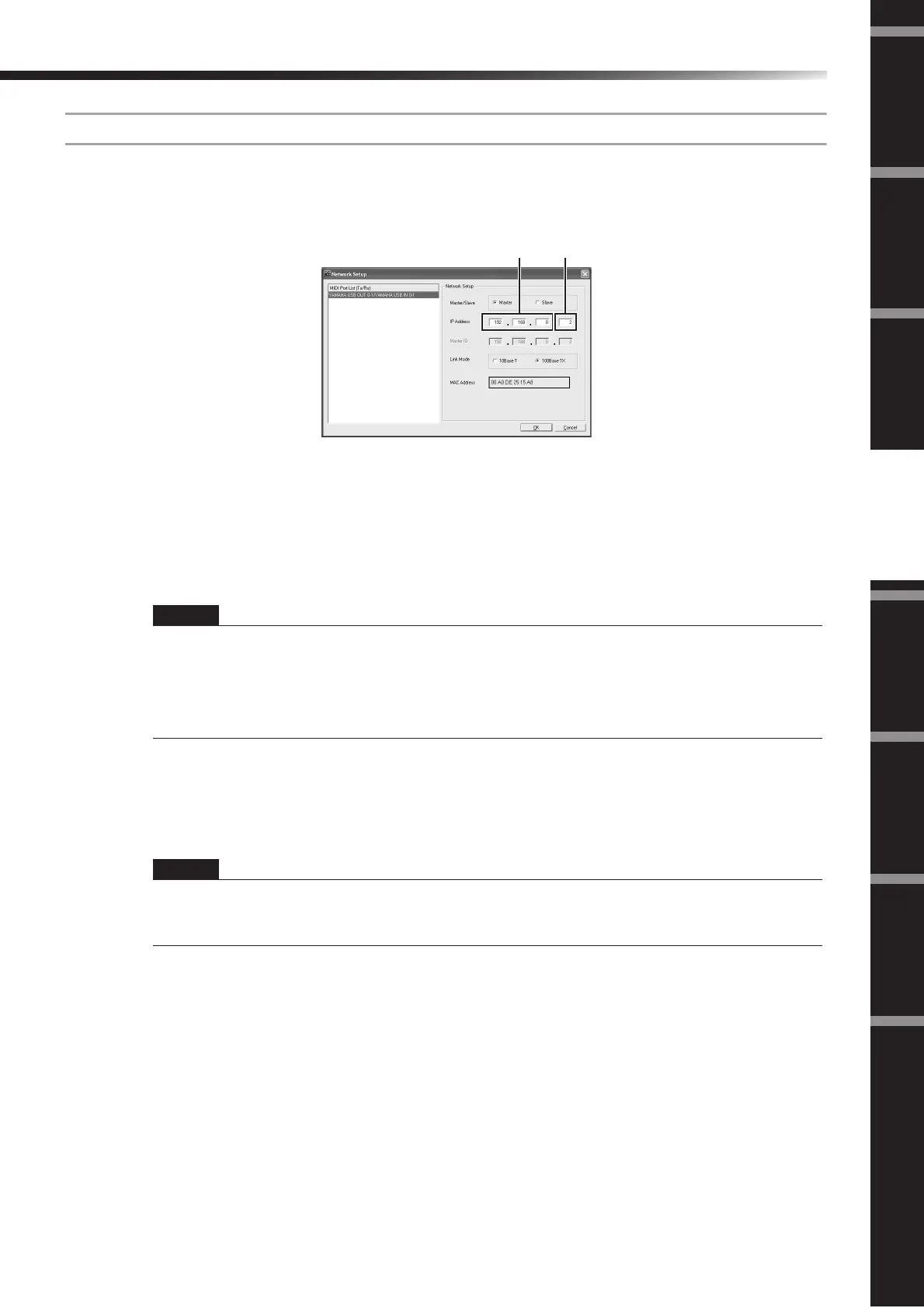 Use DME Designer to specify the IP address, master/slave, and master ID settings as follows.