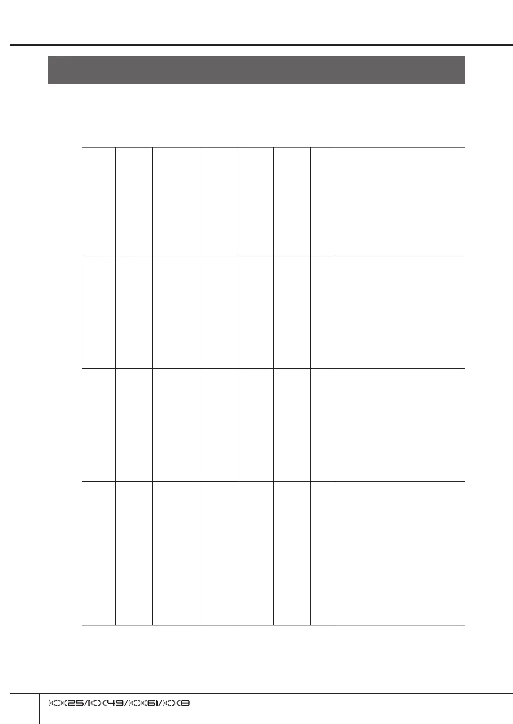 Model KX25/KX49/KX61/KX8 MIDI Implementation Chart