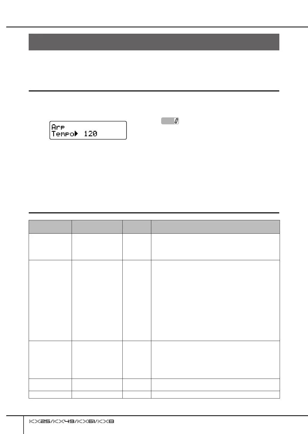 Determines the tempo (BPM) of Arpeggio playback. The Arpeggio