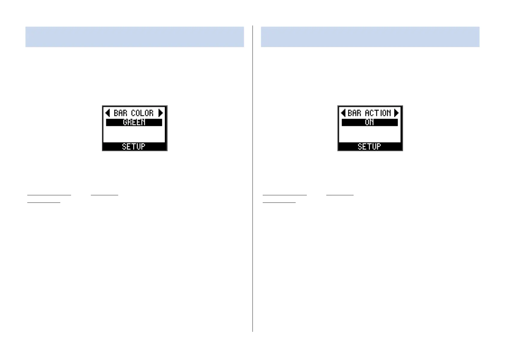 2. In the SETUP menu, turn the encoder with switch to select BAR ACTION, and then