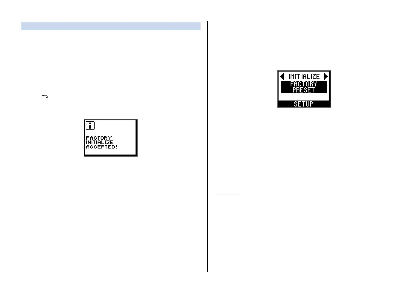 4. When you see the message “FACTORY PRESET INITIALIZE?,” turn the encoder with