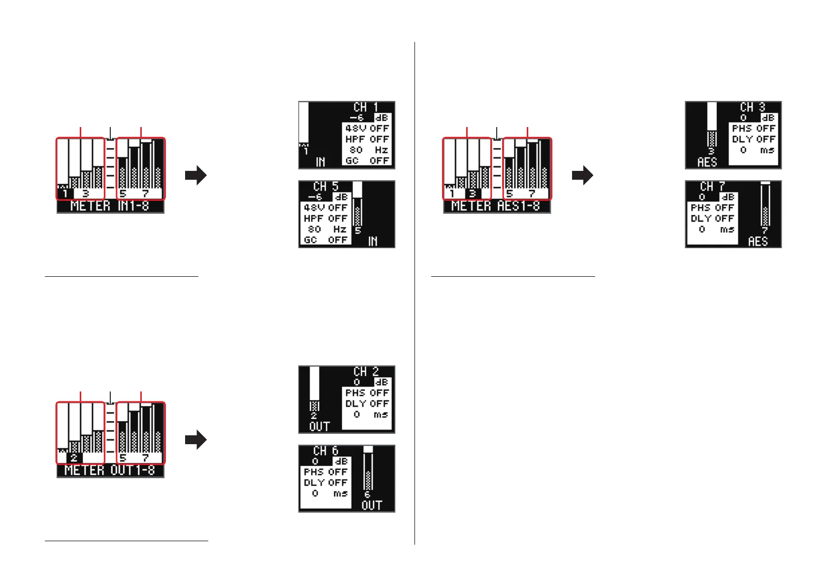 If you select a channel number and then confirm the selection on the METER OUT screen,