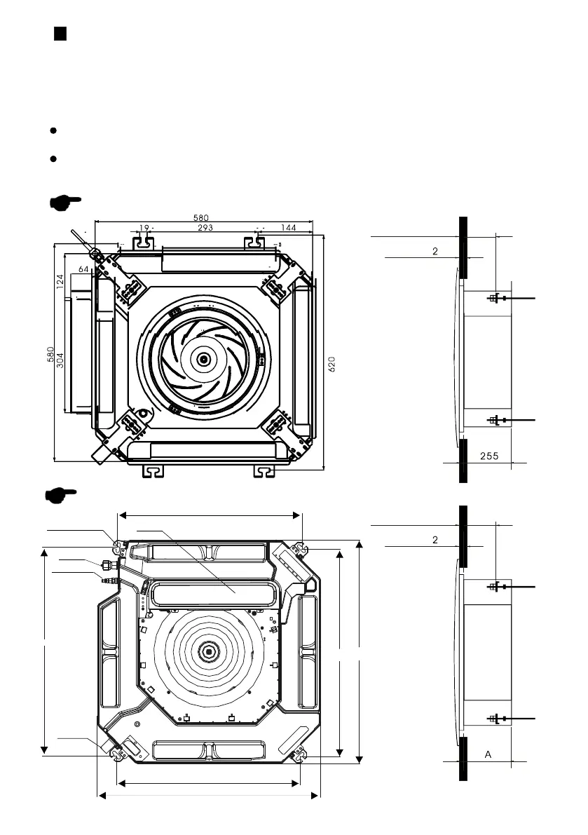 Confirm sizes of the indoor unit and ceiling opening with the attached installation paper
