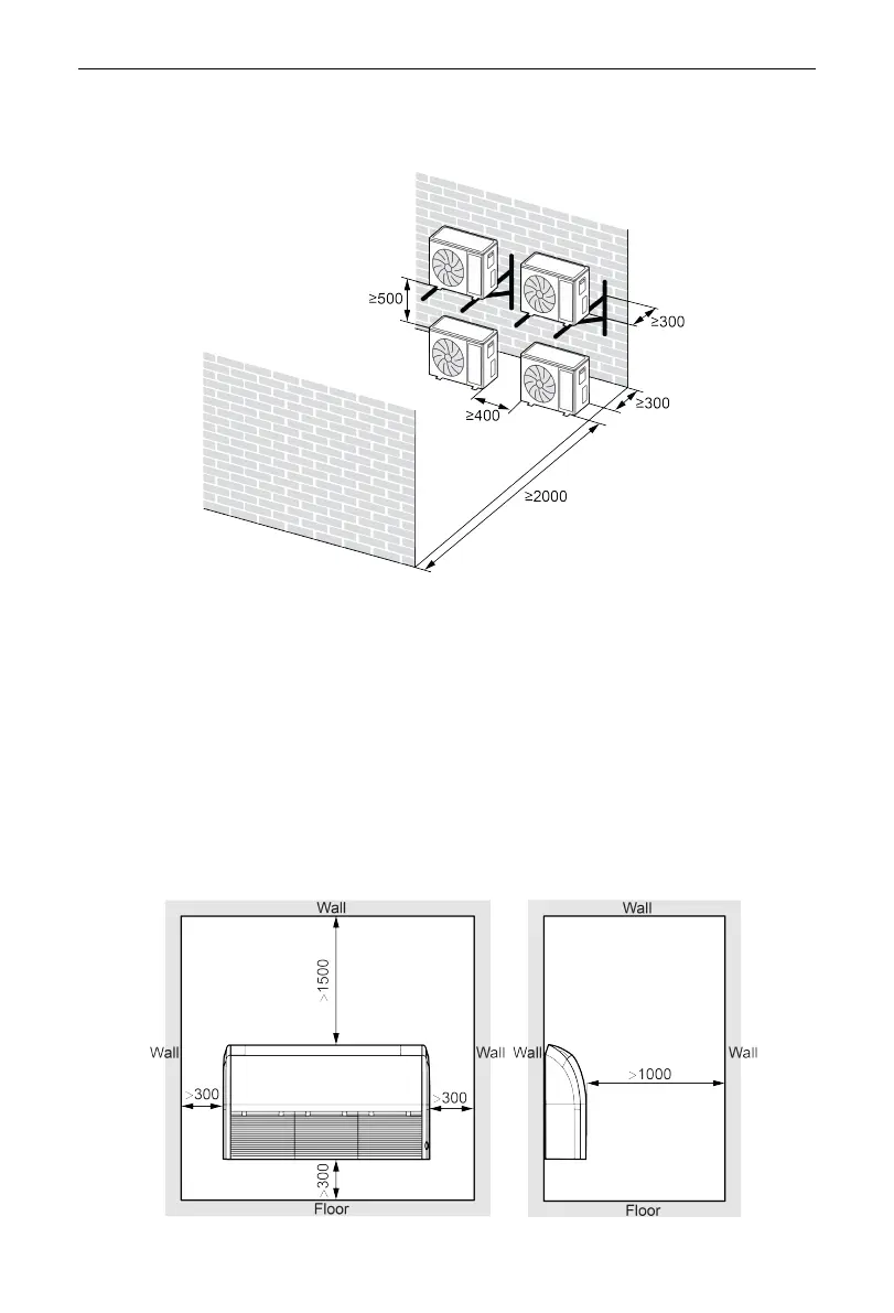 (2) Diagram of installation location and space for indoor unit (Notice: for the