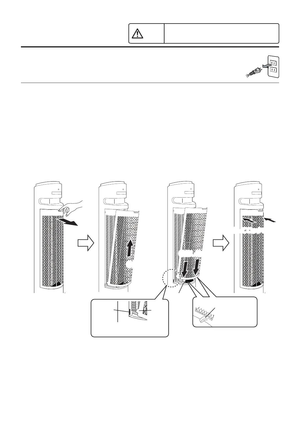 お手入れの際には、必ず電源プラグを抜いてください。感電やけがの原因になります。