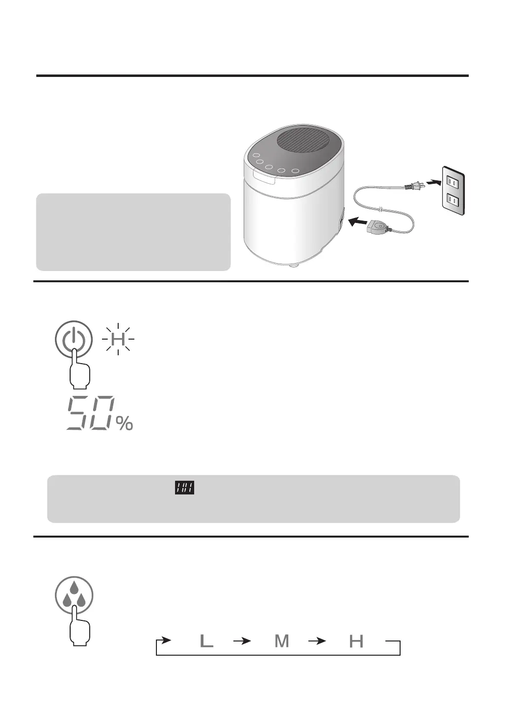 始まります。加湿量ランプ「L」が点灯し、表示部に