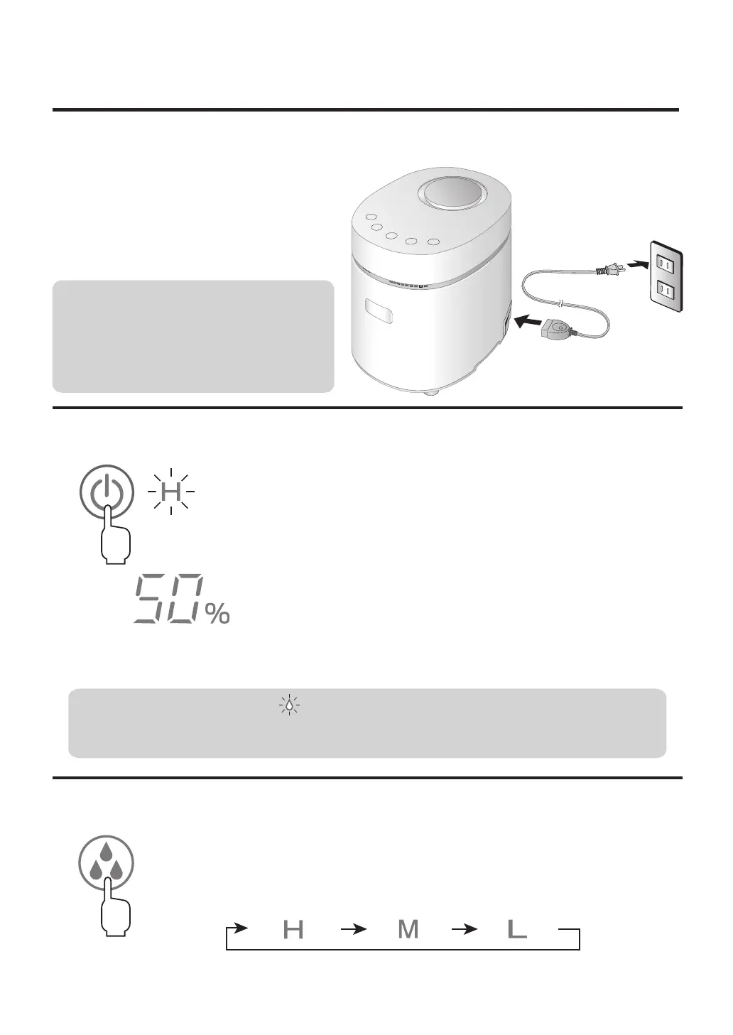 ●電源ボタンを押すと電源ボタンと加湿量切換
