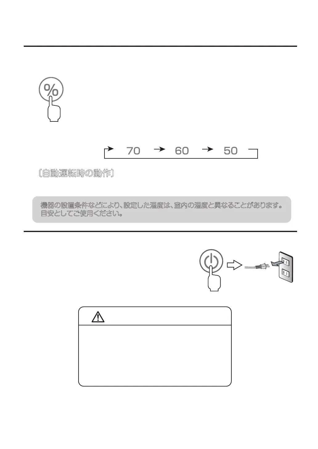 機器の設置条件などにより、設定した湿度は、室内の湿度と異なることがあります。