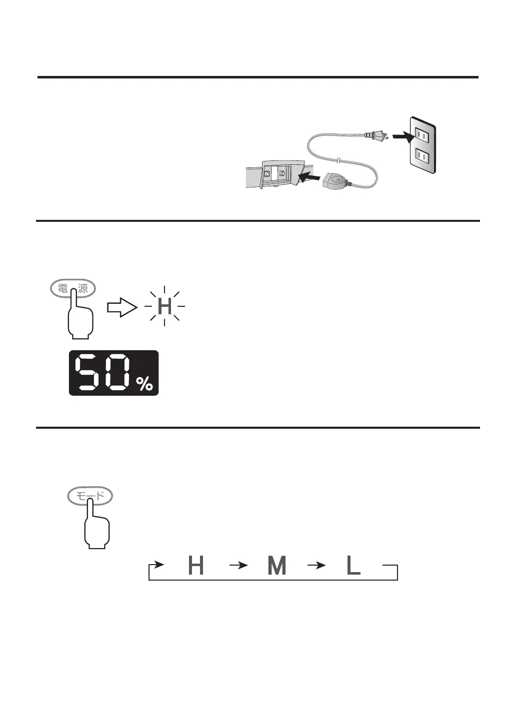 ●モードボタンを押すたびに加湿量が3段階にかわります。
