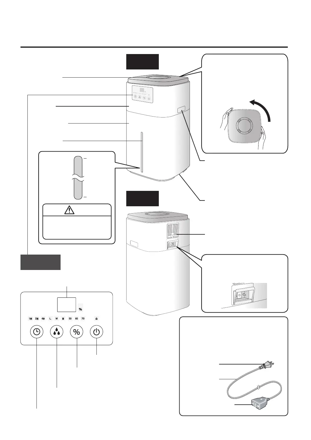 加湿量を3段階に切り換えます。