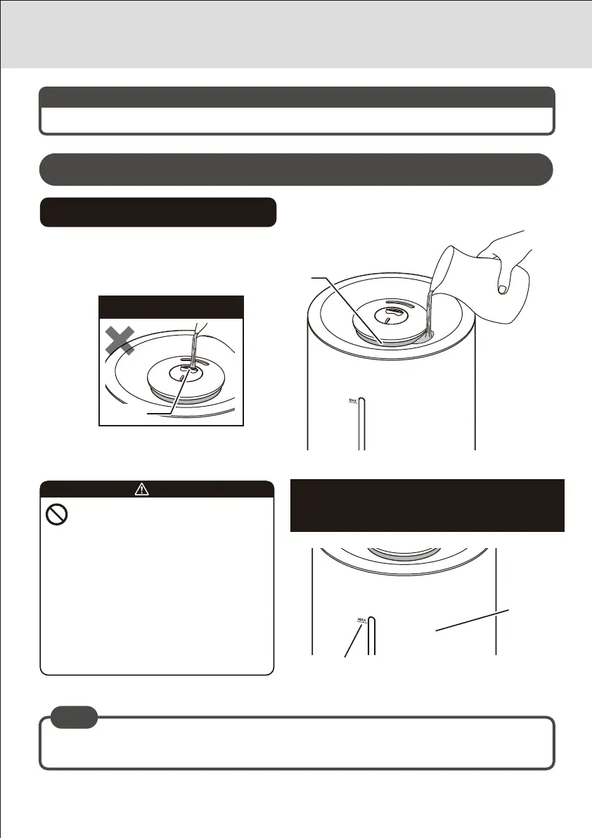 ふ た の 給 水 穴 に 、ゆ っ く り と 水 道 水 を 入 れ ま す 。