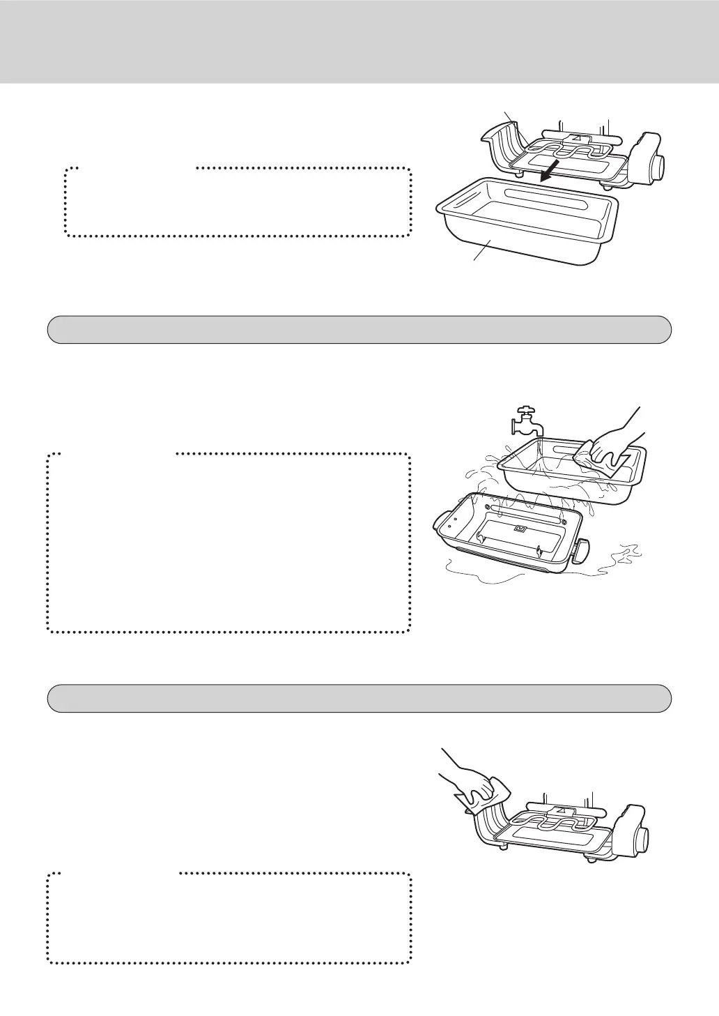 ●●水皿の取り付けは、取りはずしと逆の順序で取り付けます。
