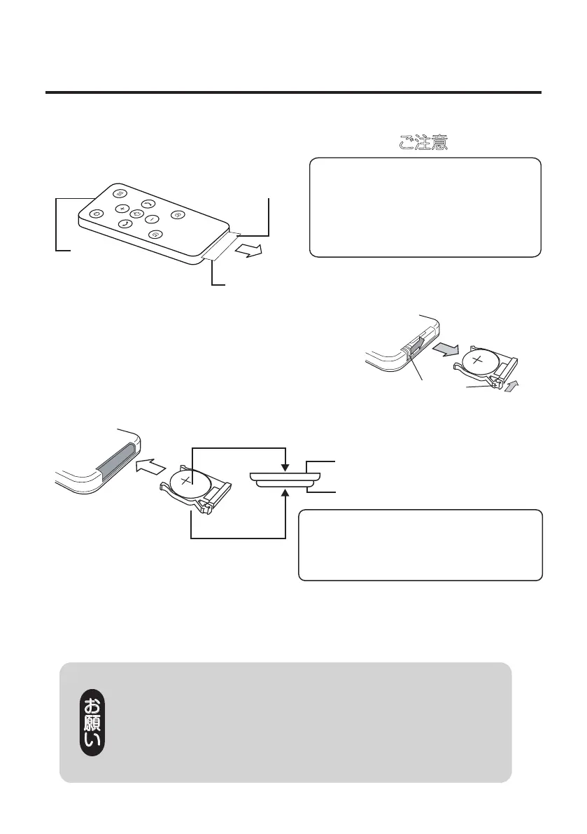 ●長期間リモコンを使用しないときは、電池の液もれを防ぐために
