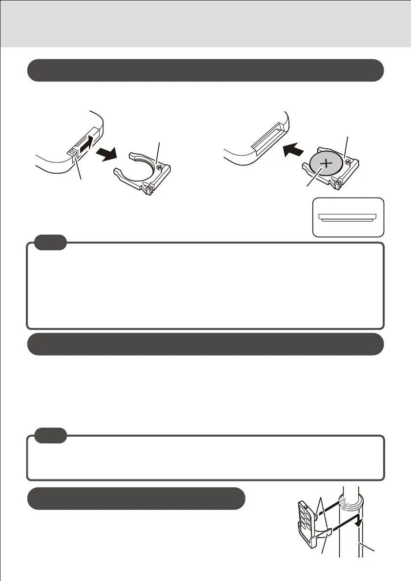 電池の+側を上にして電池ホルダーにのせ、電池ホルダーをリモコンに差し込みます。
