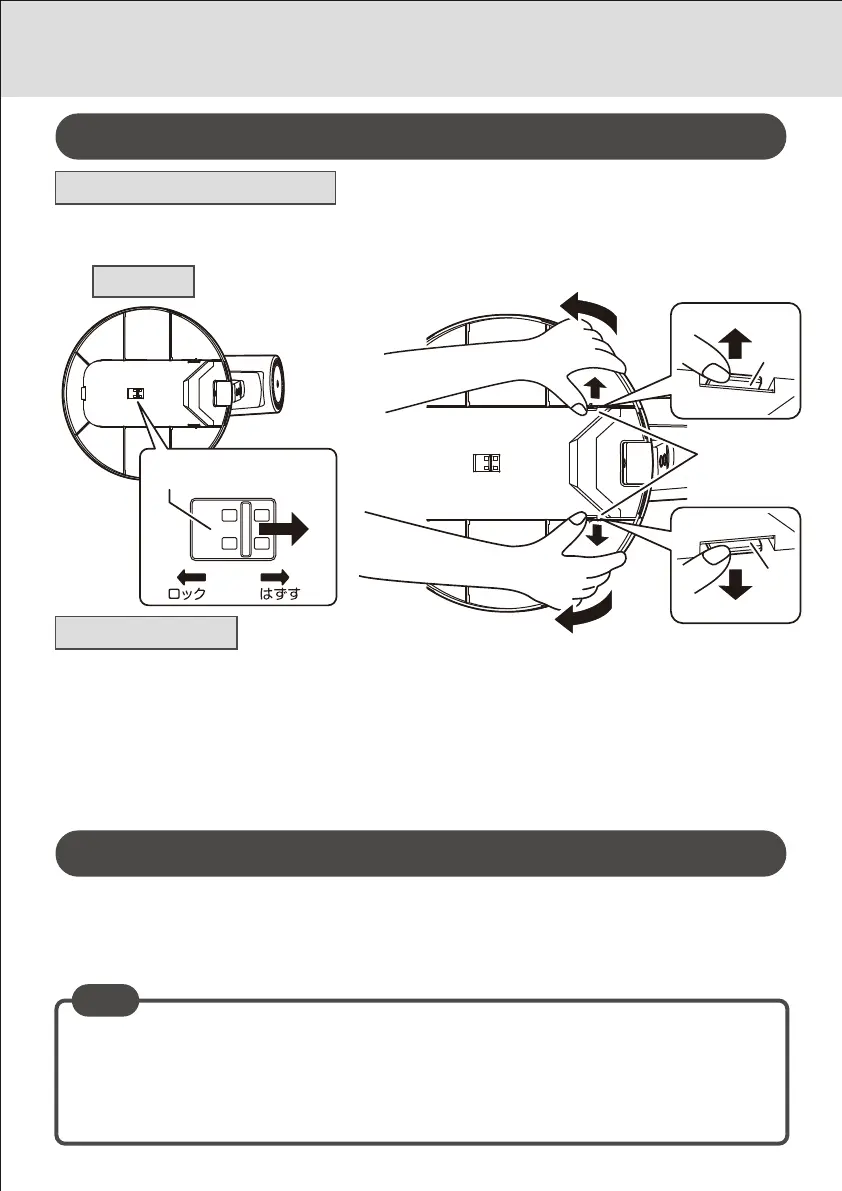 ❶ベース 底 面 のスラ イド ロックを「 は ず す」側 へスライドさ せ ま す。
