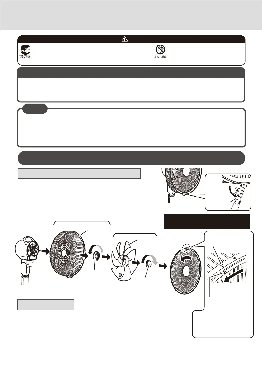※ガードや羽根を取り外すときは、ガードを正面に向けておこなってください。
