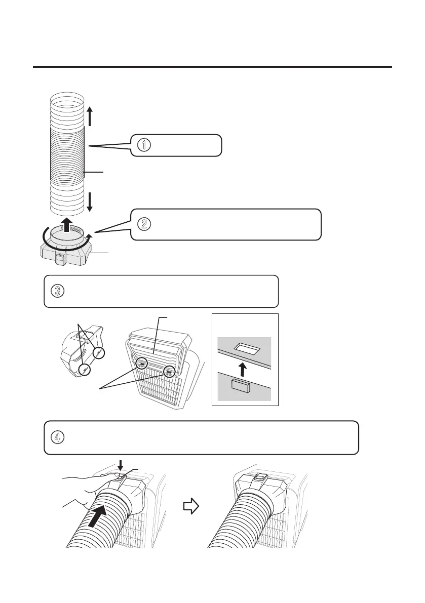 継手の凸部(2箇所)を吹出口の穴(2箇所)に掛け