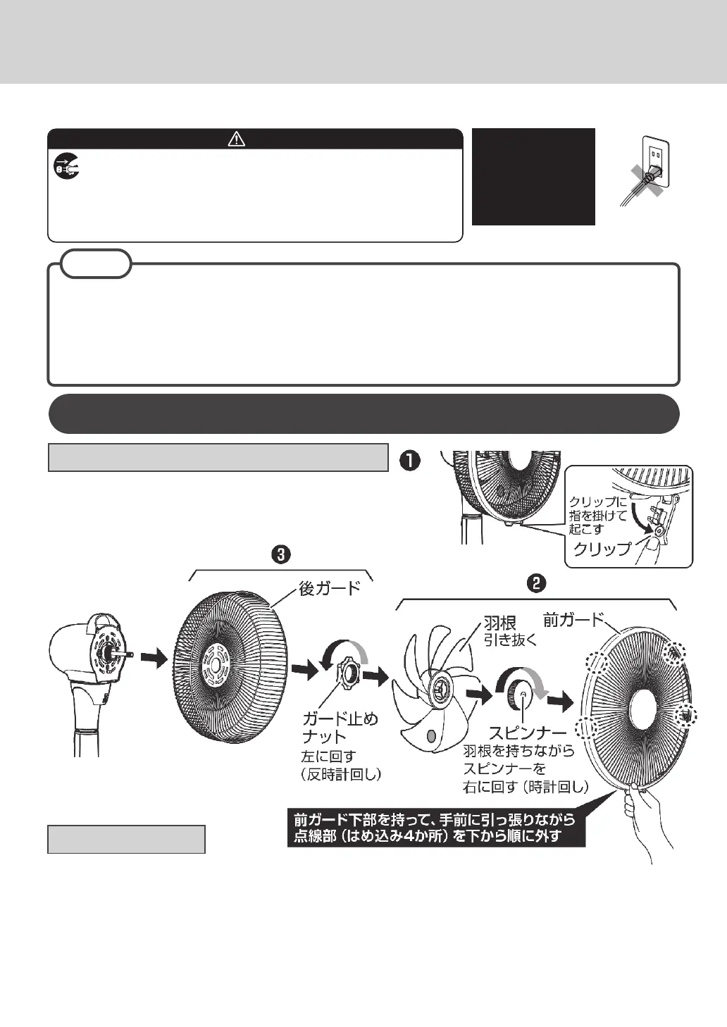 ※お 手入れ後 に使 用するときは、本 書 の 組み立 てかたを 参 照して、後 ガード、羽 根、前ガード