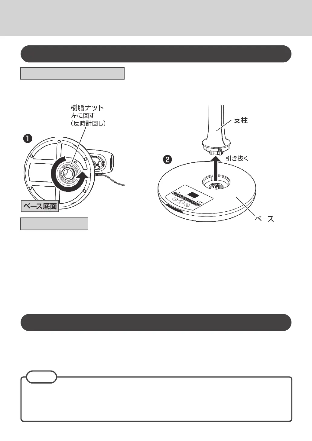 ※お手入れ後に使用するときは、本書の組み立てかたを参照して、ベースと支柱を確実に