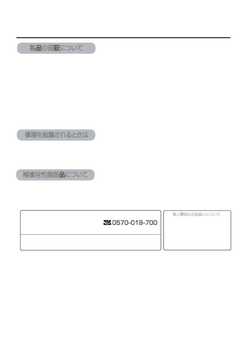 ※お問い合わせの際には保証書に記載の商品名・品番をご連絡ください。