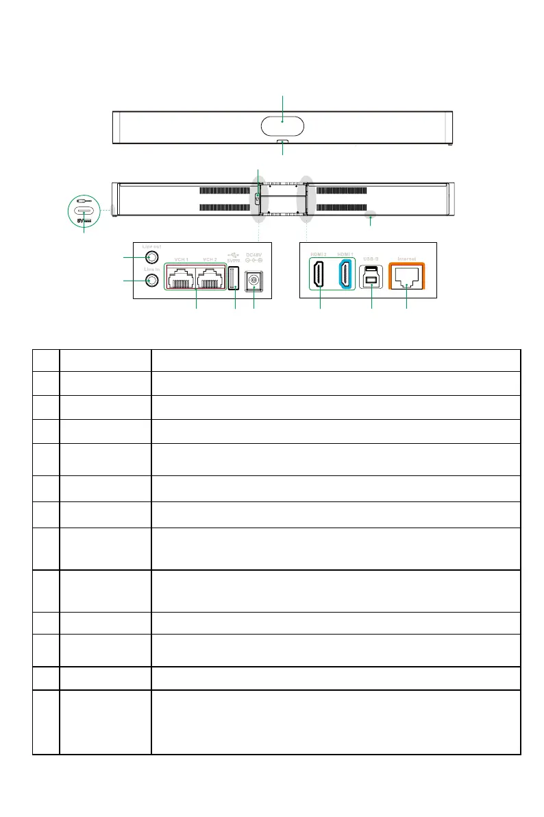 3 USB-C 2.0 (side) Connect to a Yealink Wireless Presentation Pod for pairing.