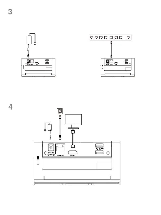 Opmerking: U moet de PoE-switch en een CAT5e-kabel apart aanschaffen als u de RoomCast E2 met PoE-switch