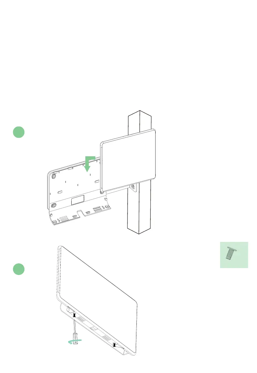 ES: Coloque RoomPanel Plus E2 en el soporte. Cuando escuche un clic, apriete el tornillo