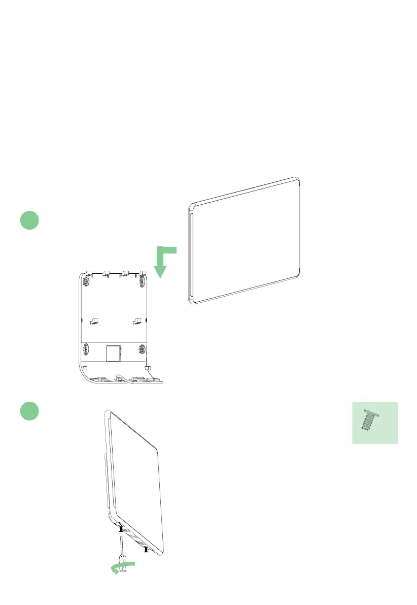 ES: Coloque RoomPanel Plus E2 en el soporte. Cuando escuche un clic, apriete el tornillo