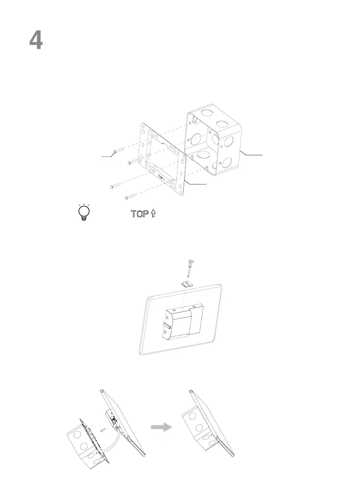Attach the metal bracket to the electrical box (as shown in the following