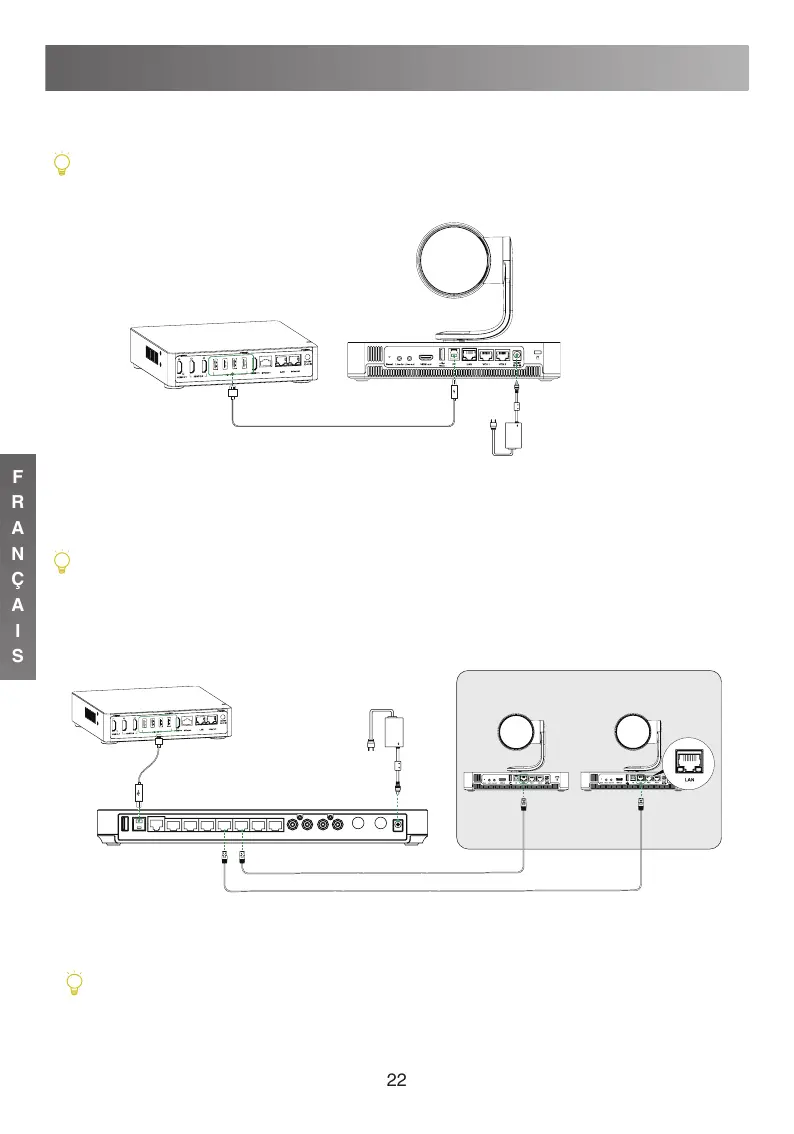 • Lorsque plus de deux appareils SmartVision 80 sont connectés, AVHub doit connecter un commutateur PoE+