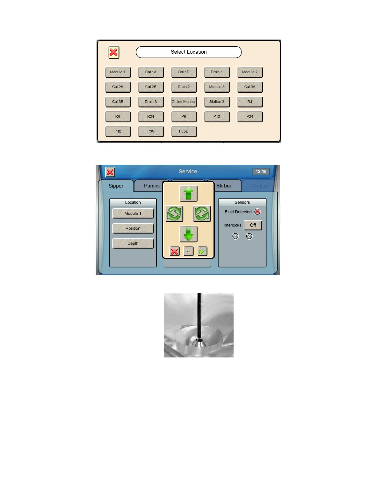 5. Make certain the Sipper is centered, then touch at the bottom right of the adjustment window.