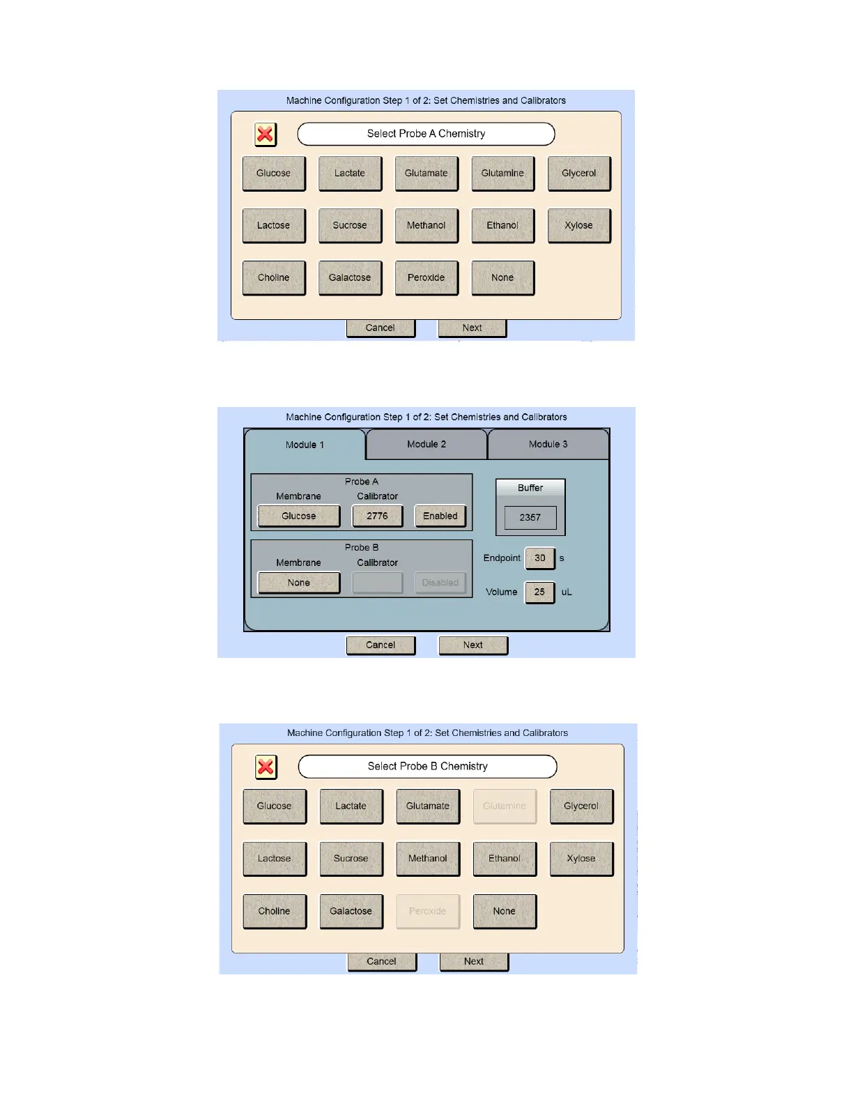 5. To run a second chemistry in module 1, touch the Probe B membrane button. Only chemistries that can be run