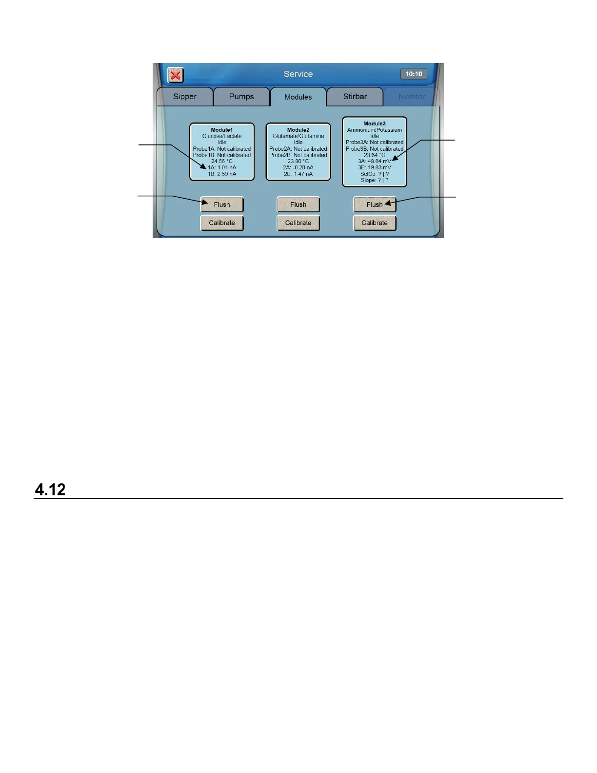 1. Touch the [Flush] button under Module 3 to flush the selected sample module with ISE buffer.