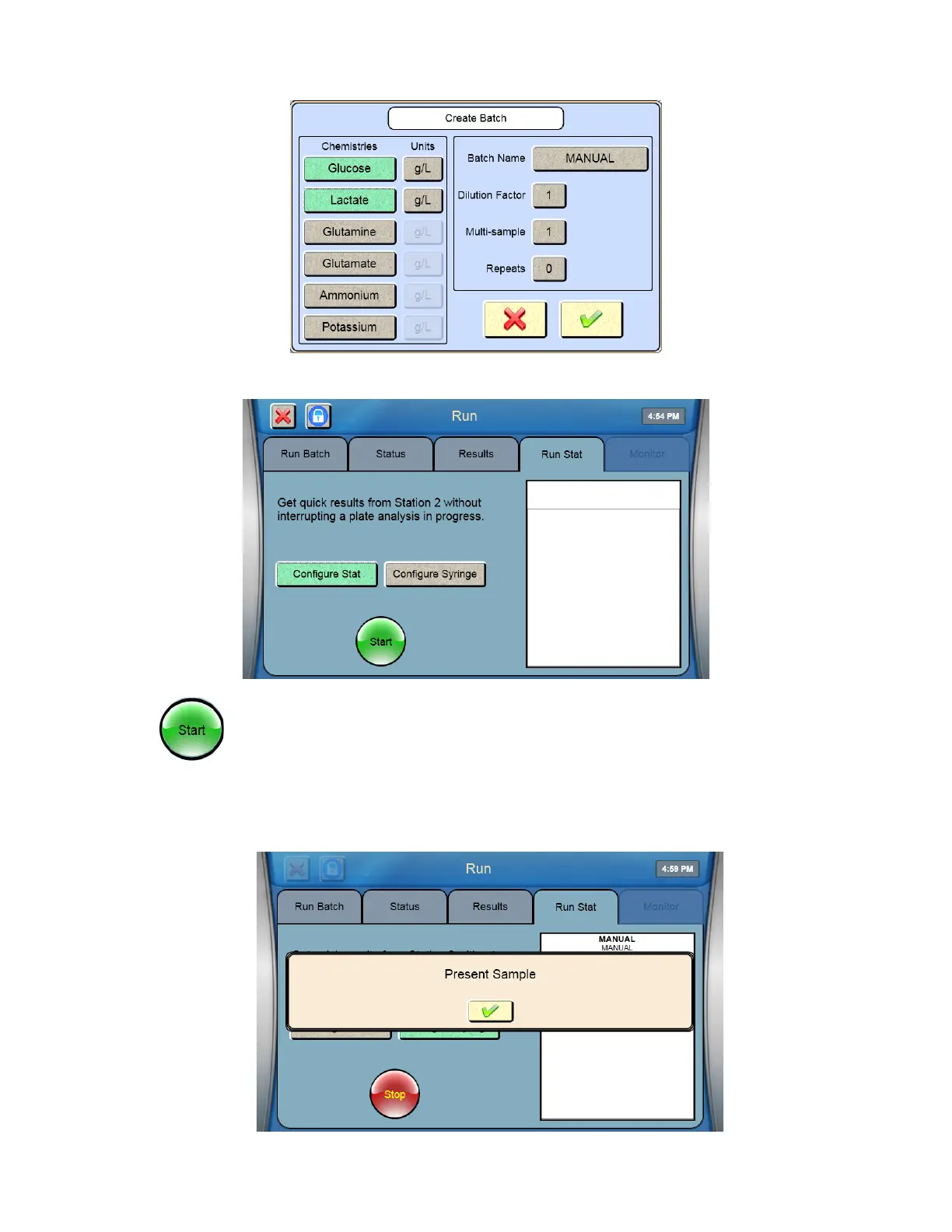 5. Touch to return to the Run Stat screen. The type of sample you configured will be highlighted.