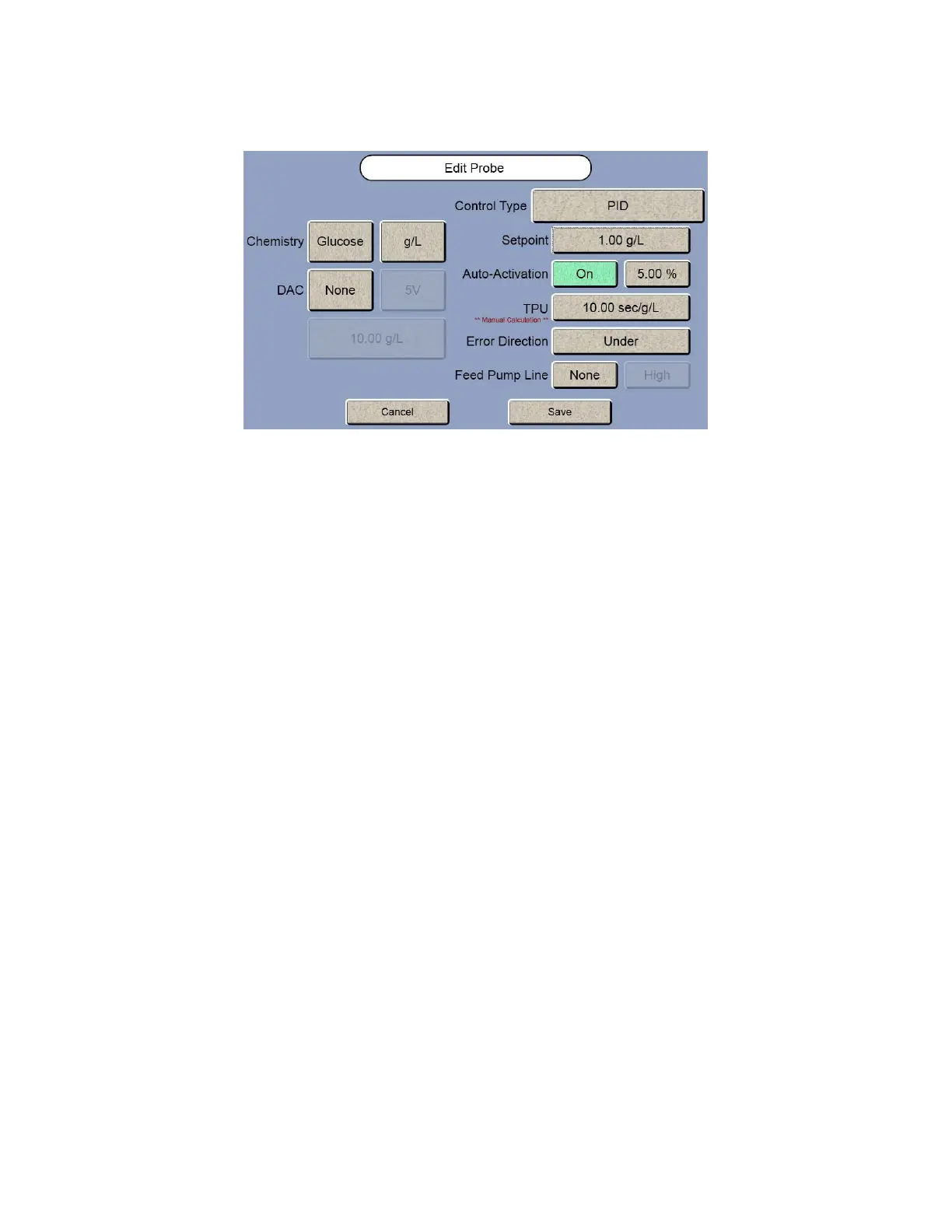 Example: In the case of a fermentation where glucose is the controlled analyte the user should select [Under] error