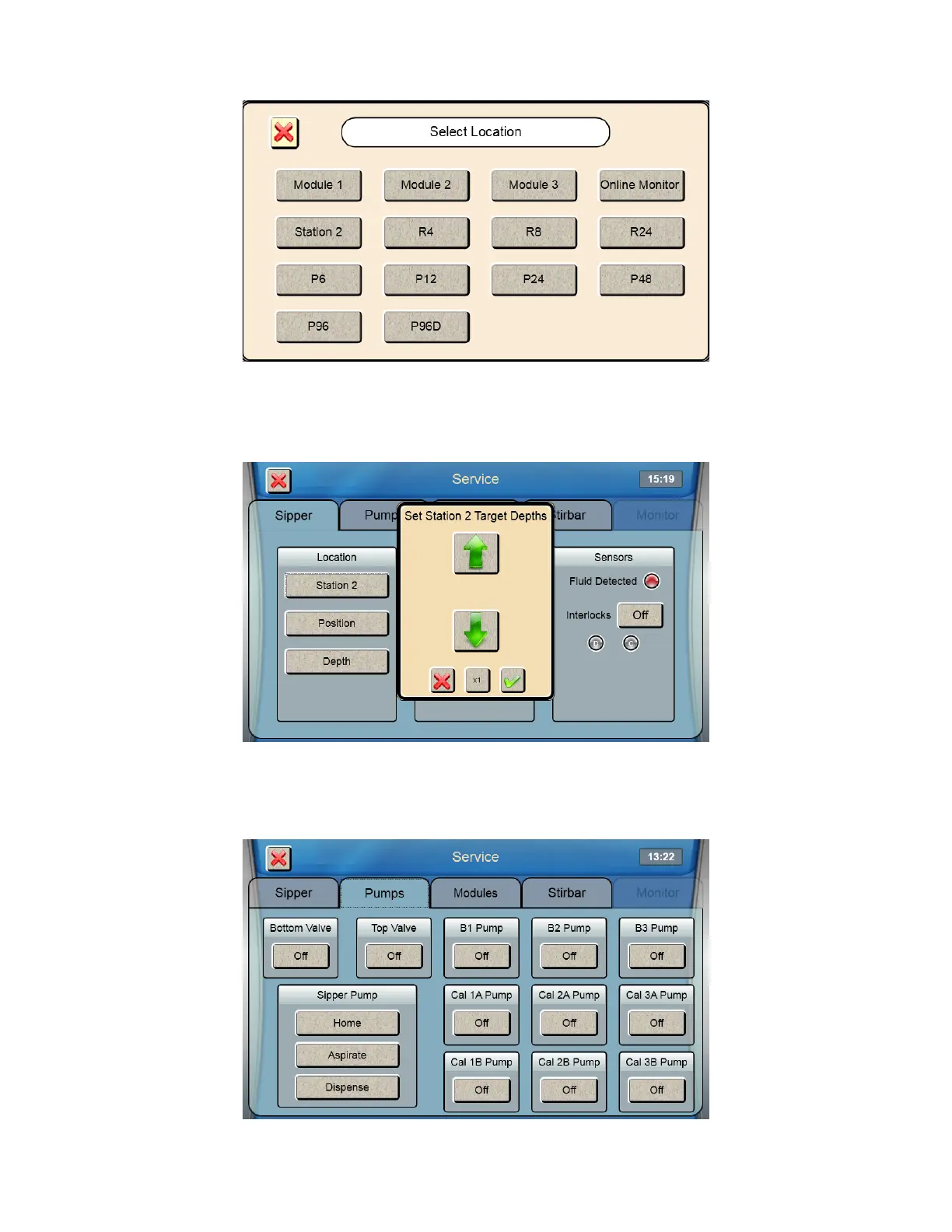 Sample Modules: use the up and down arrows to set the tip of the sipper even with the top of the Module. Refer to